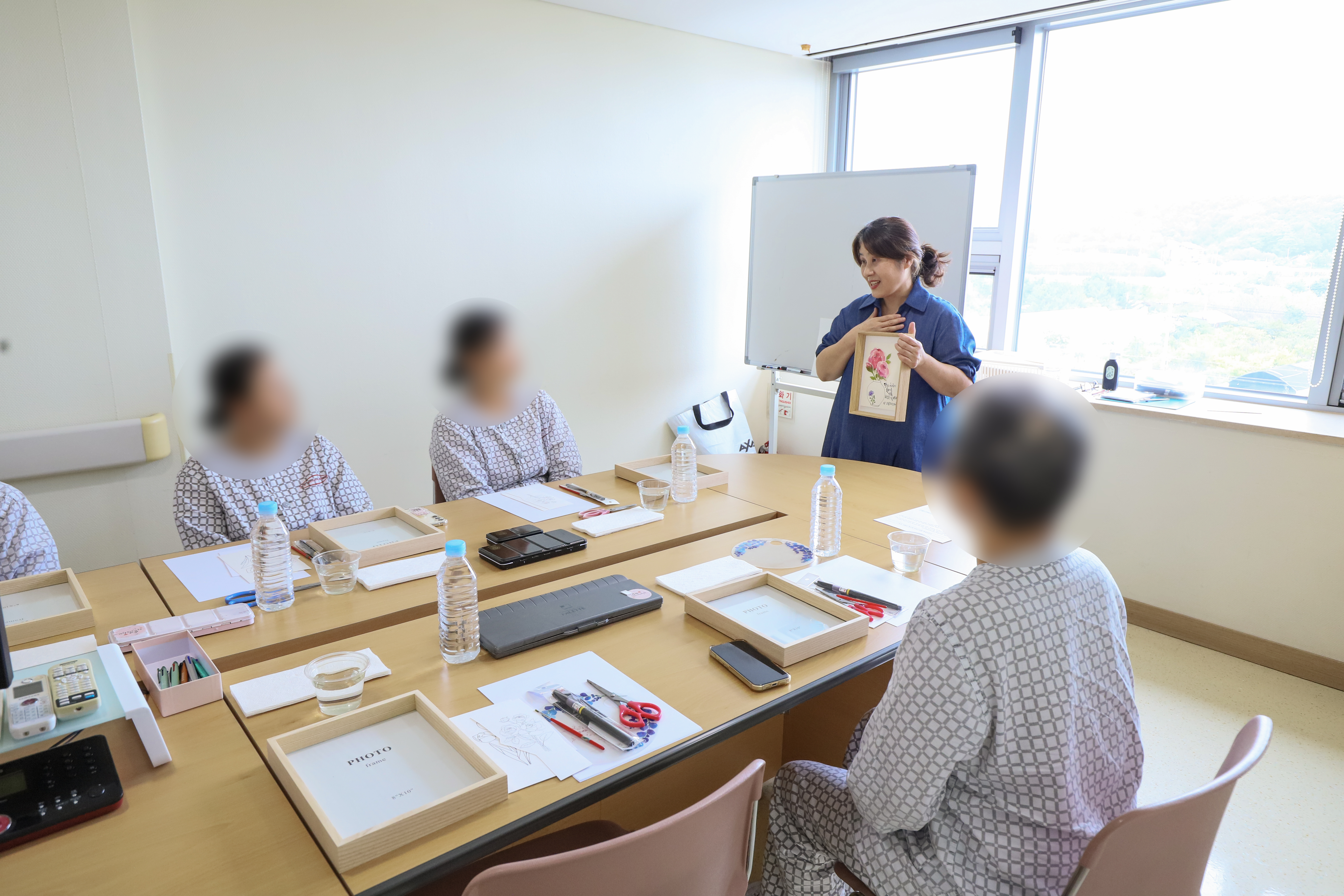 첫 회기에서는 책갈피 캘리그라피 만들기 활동이 진행되었으며, 참여자들은 직접 수채화 기법을 활용해 작품을 제작하며 마음을 표현하고 심리적 위안을 경험했다. 참여 환자들은 “짧은 시간이지만 즐겁고 마음이 한결 가벼워졌다”, “치료 과정 중에 오랜만에 웃을 수 있었다”는 긍정적인 반응을 보였다.